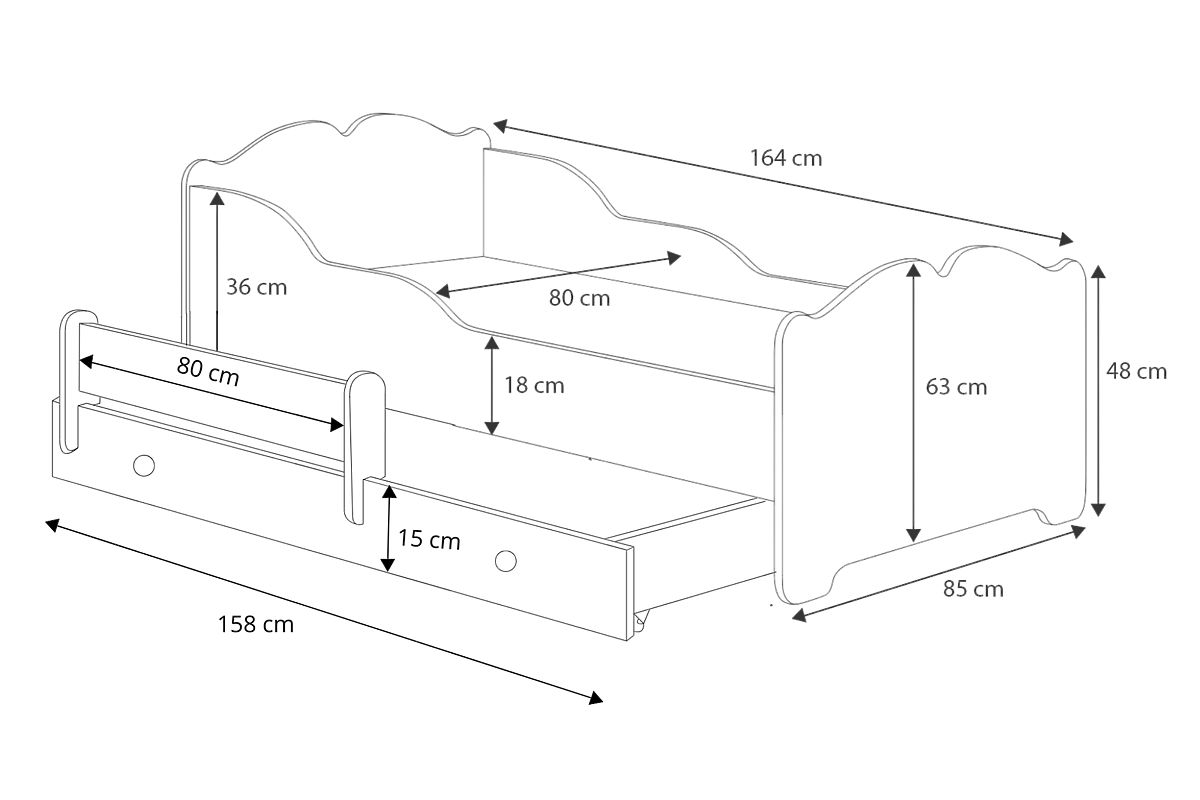 Postelja je zasnovana z mislijo na udobje in varnost, kar jo naredi idealno rešitev za sobo vsake deklice. Izjemnost tega modela poudarja nežen tisk na vzglavju, ki ji daje čar in dekliški značaj, hkrati pa je izdelana iz varnih, certificiranih lakov. Visoka kakovost materialov, zaobljeni robovi in trdna konstrukcija zagotavljajo varnost, medtem ko sistem prožnih letvic FLEX omogoča udoben spanec. Zaradi dveh spalnih površin lahko postelja služi več let in raste skupaj z otrokom.
