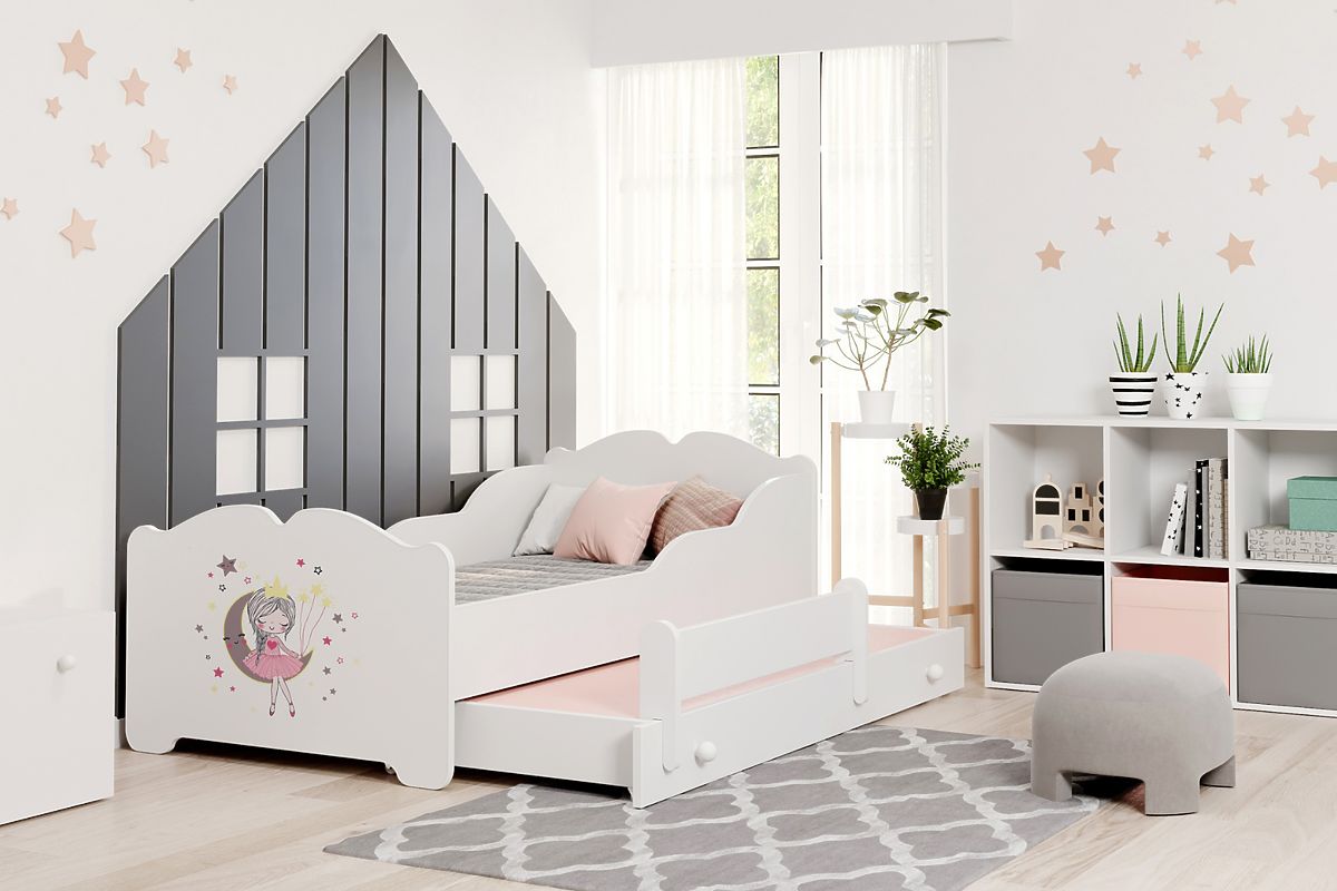 Postelja je zasnovana z mislijo na udobje in varnost, kar jo naredi idealno rešitev za sobo vsake deklice. Izjemnost tega modela poudarja nežen potisk na vzglavju, ki dodaja čar in dekliški značaj, hkrati pa je izdelan iz varnih, certificiranih lakov. Visoka kakovost materialov, zaobljeni robovi in trdna konstrukcija zagotavljajo varnost, medtem ko sistem prožnih letvic FLEX zagotavlja udobno spanje. Zaradi dveh spalnih površin lahko postelja služi mnogo let in raste skupaj z otrokom.