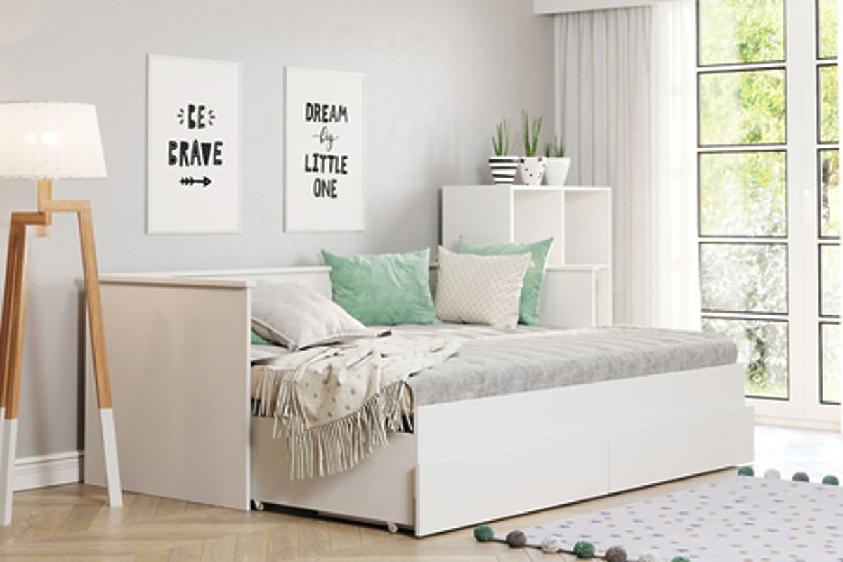 Postelja HELIOS je moderna, raztegljiva postelja za mladino, ki združuje estetiko s praktičnimi funkcijami. Zaradi možnosti hitrega raztezanja v zakonsko posteljo, z izvlekom spodnje osnove, je ta kos pohištva odličen tako za majhne kot tudi prostorne sobe. Njegova univerzalna zasnova v beli barvi se prilagaja vsakemu slogu notranje opreme, dodaja svežino in eleganco.