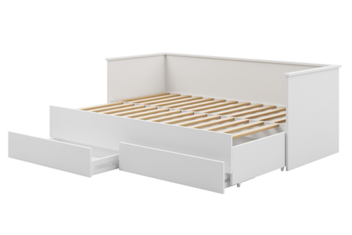 Model HELIOS ni le udoben prostor za spanje, temveč tudi praktična rešitev za vsakodnevno uporabo. S prostornimi predali na krogličnih vodilih je shranjevanje posteljnine, oblačil ali drobnarij zelo enostavno, kar omogoča ohranjanje reda v sobi. Po zložitvi postelja služi kot elegantna in udobna kavč, idealna za sprostitev čez dan ali sprejemanje gostov. Trdna konstrukcija iz visokokakovostne pohištvene plošče debeline 18 mm zagotavlja vzdržljivost in stabilnost, medtem ko brestove letvice rešetke skrbijo za pravilno podporo vzmetnice, kar zagotavlja udoben spanec vsako noč.