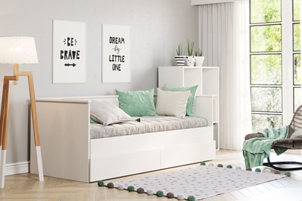 Postelja HELIOS je moderna, raztegljiva postelja za mladino, ki združuje eleganten videz s praktičnimi funkcijami. Zaradi možnosti hitrega raztezanja v dvojno posteljo, z izvlekom spodnje osnove, je ta kos pohištva odličen tako za majhne kot prostorne sobe. Njegova univerzalna zasnova v beli barvi se prilega vsakemu stilu notranje opreme, dodaja mu sodoben značaj in nežno eleganco.