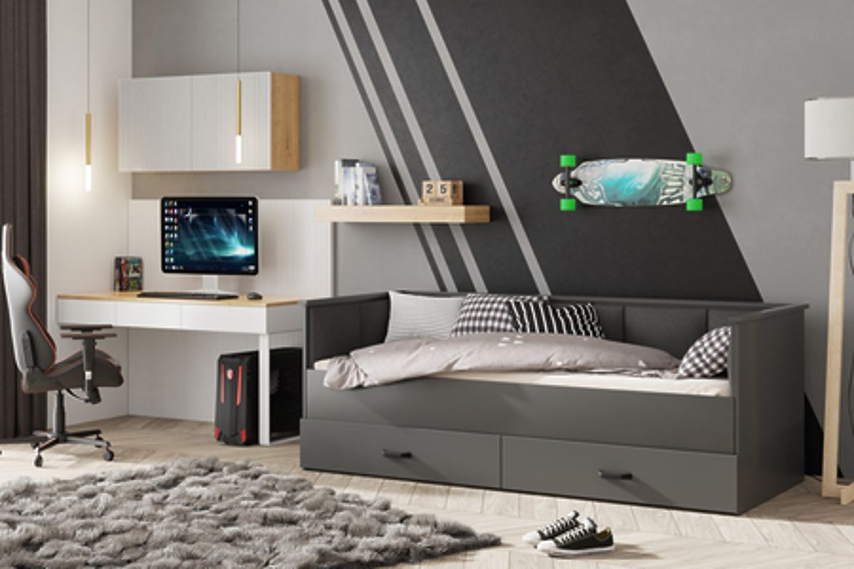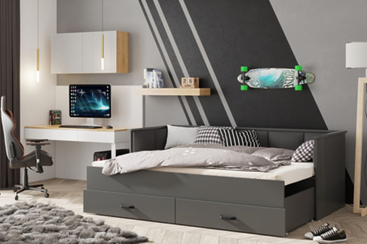 Banaby.si » Otroške postelje / Postelje z dodatnim ležiščem / Raztegljiva postelja HELIOS z oblazinjenimi paneli grafit 200x80/200x160