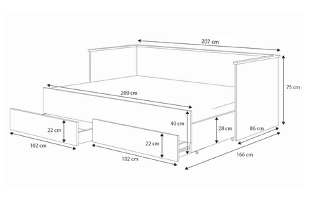 Raztegljiva mladinska postelja HELIOS, na voljo v sivi barvi, je popolna kombinacija elegance in funkcionalnosti. Zaradi možnosti hitrega raztegovanja v dvojno posteljo (160x200 cm) je idealna rešitev tako za manjše kot večje sobe.
