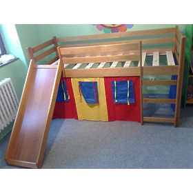Součástí postele je molitanová matrace s roštem. Domeček s látkovou stěnou tak utváří příjemný dojem. Děti si takovou postýlku zamilují. A ještě to navíc není všechno. Je tu i skluzavka, která dopřeje dětem možnost sklouznout se, když vstávají nebo klidně i během dne. Kdo nemá prostoru nazbyt, jistě tuto variantu rád uvítá. Děti také potřebují určitý druh soukromí.