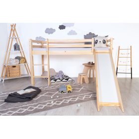 Lesena povišana postelja Ourbaby Modo s toboganom bo polepšala vsako otroško sobo. Otrok se po lestvi povzpne na zgornjo posteljo in se spusti po toboganu. Zasnova povišane postelje združuje zabavo in uporabnost.