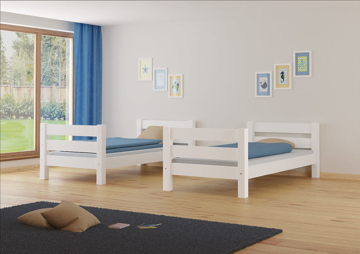 Praktičen pograd Josh v beli barvi je preverjena rešitev za sobe, kjer je potrebno varčevanje s prostorom. Zgornje ležišče je opremljeno z zelo visokim ograjom proti padcu, zato je otroška iznajdljivost s to posteljo varna. V primeru preureditve sobe postelja omogoča tudi razdelitev na dve ločeni postelji.