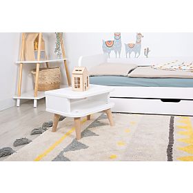 Lesene nogice za posteljo Nell 2v1 niso vključene v paket. Set nogic (4 kosi) je treba dodati v košarico posebej.