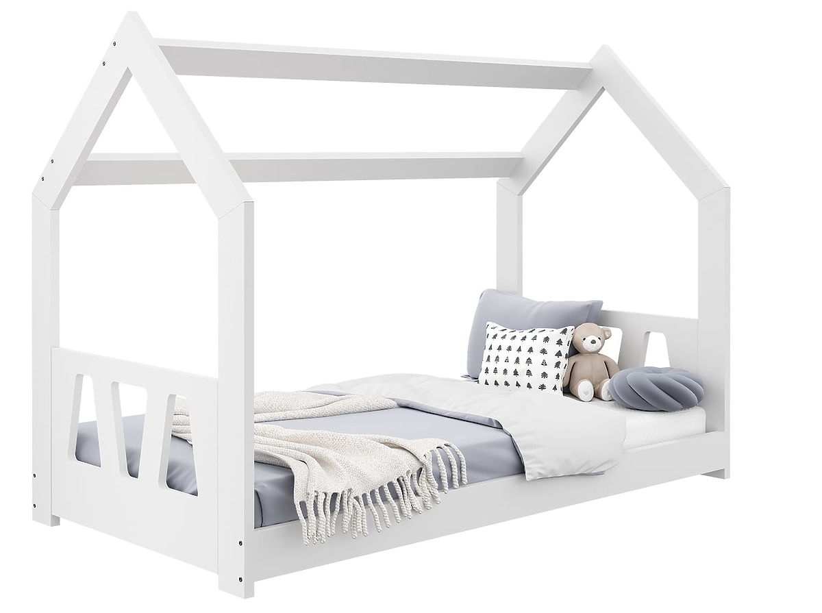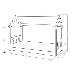 Bela postelja Ina velikosti 160 x 80 cm v obliki hiše je marsikateremu otroku uresničitev sanj in bo zaradi originalnih izrezov na vzglavju postelje postala prevladujoči del vsakega prostora. Spalni prostor se lahko čez dan uporablja kot prijeten prostor za igro.