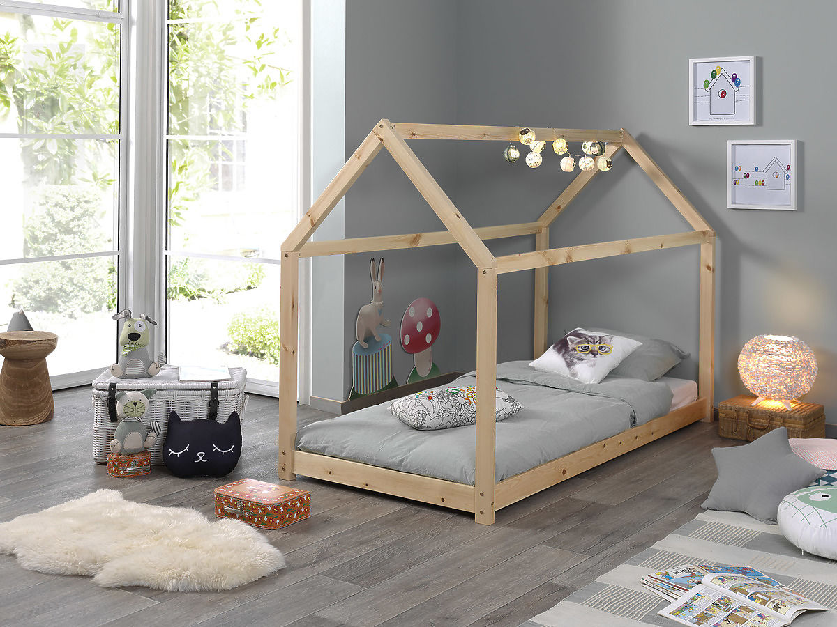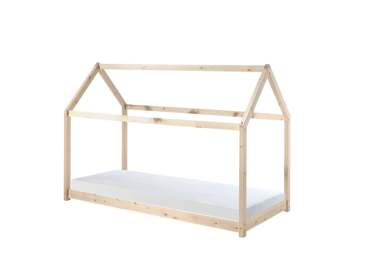 Pričarajte vašim otrokom njihovo sanjsko sobo z naravno leseno posteljo Cabane. Postelja v obliki hiše ustvarja prijeten igralni prostor podnevi in varen prostor za spanje ponoči.