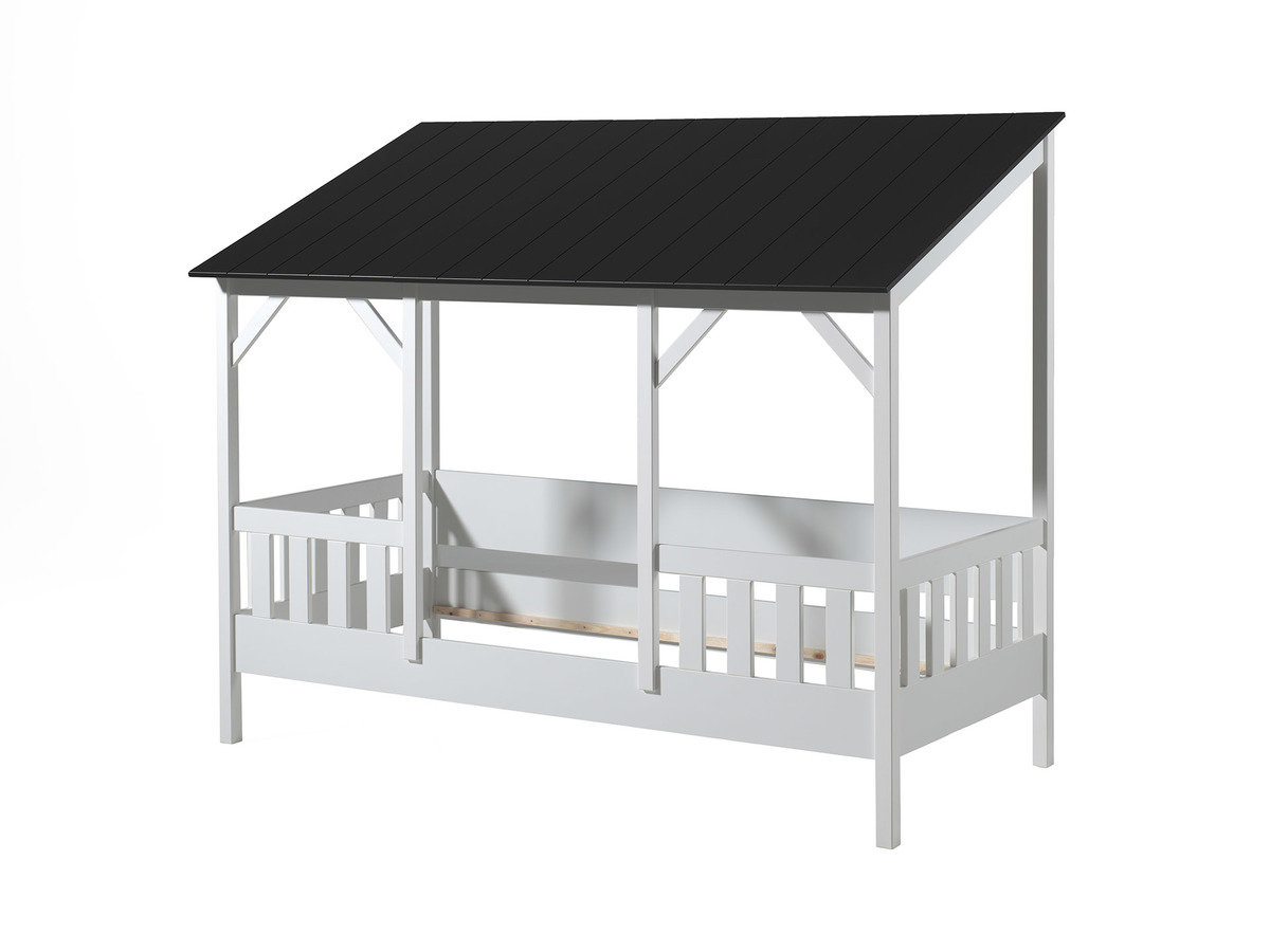 Ustvarite sanjsko sobo za vaše otroke z belo posteljo Charlotte z ograjo in črno streho iz kolekcije Housebed. Postelja v obliki hiške čez dan ustvari prijeten igralni kotiček, ponoči pa varno mesto za spanje.