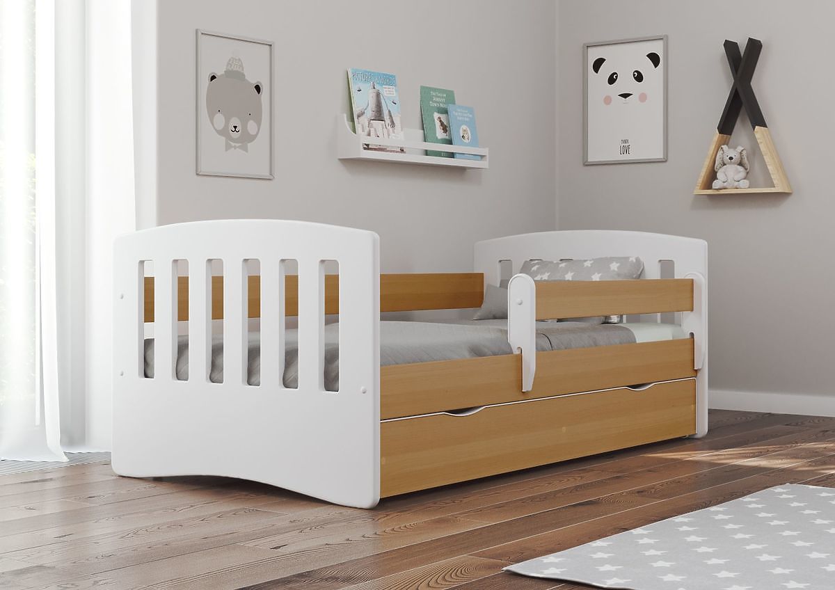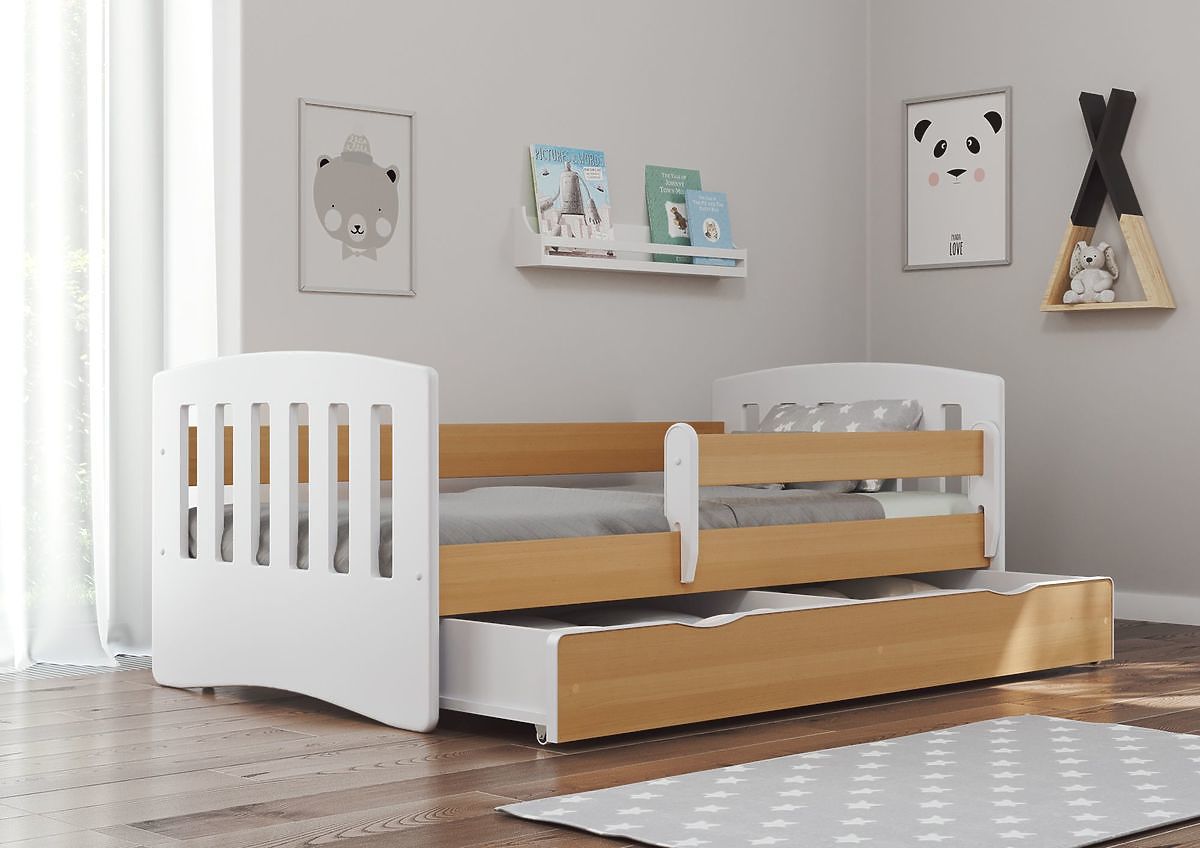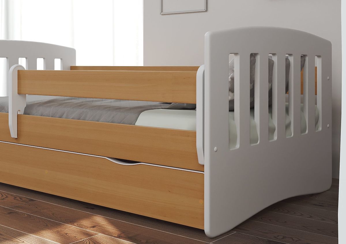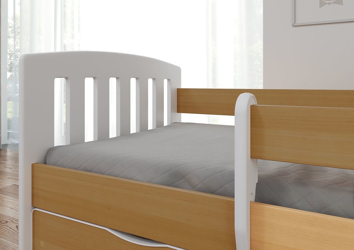 Krásná moderní dětská postel v kombinaci barev bílé a světle hnědého bukového dekoru. Hodí se do pokojíčků pro kluky i holky. Postel je vyrobená z kvalitního .. več