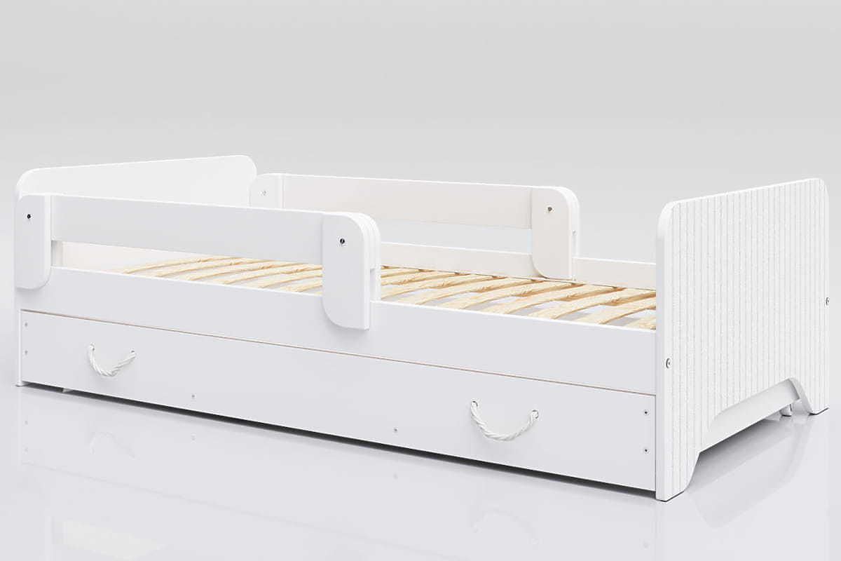 Otroška lesena postelja, ki se ponaša s svojim modernim videzom, je popolna izbira za vsako otroško sobo. Postelja se odlikuje z varno in trdno konstrukcijo. Primerna je za otroke do 14 let ali do višine 150 cm. Postelja je opremljena tudi z ograjo, ki otroka ščiti pred padcem med spanjem.