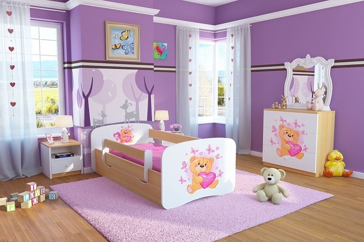 Dětská postel Ourbaby s motivem medvídka s krásnými bočnicemi v bukovém odstínu rozzáří každý dětský pokojíček a udělá radost malé holčičce! Dětská postel Ourbaby je známá svou komfortností, funkčností, krásným a dětským designem. Je velmi snadno smontovatelná, vyrobená z kvalitních materiálů.