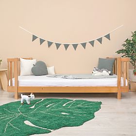 Otroška postelja Montessori bukev Kate vas bo navdušila z edinstvenim dizajnom in kvalitetno izdelavo. Postelja v naravnem dekorju je izdelana iz visokokakovostnega bukovega lesa, zahvaljujoč zaobljenim vogalom, upognjenim s posebno tehniko, pa bo varen in udoben prostor za sprostitev in spanje vašega malčka. Prednost je možnost odstranitve naslonjal, kar lahko podaljša čas uporabe ležišča tudi v višjo starost otroka.