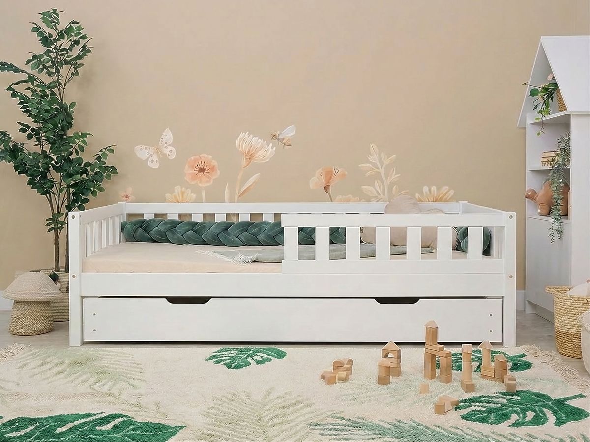 Otroška postelja Montessori Meadow v beli barvi s shranjevalnim prostorom. .. več