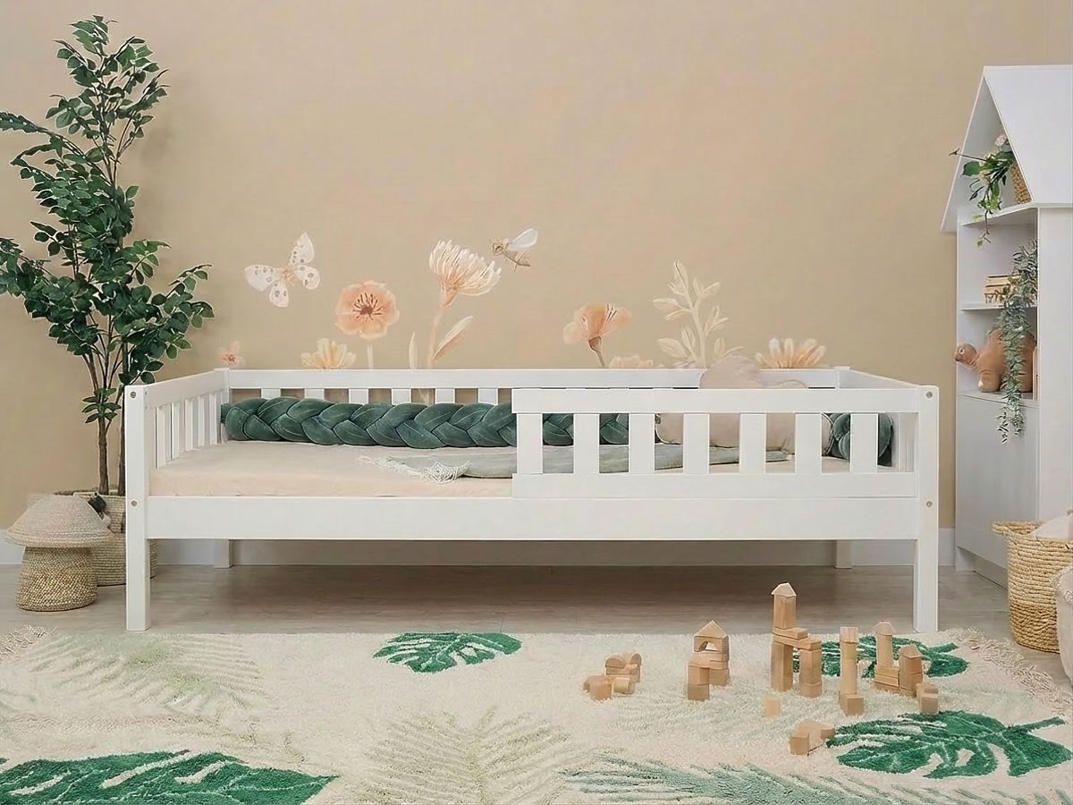 Moderna otroška postelja Montessori Meadow v beli izvedbi je zasnovana po načelih Montessori, ki spodbujajo samostojnost in naravni razvoj otroka. Zaradi konstrukcije na nogicah postelja deluje zračno in hkrati ponuja praktično možnost uporabe shranjevalnega prostora pod ležiščem. Postelja nudi varno in udobno mesto za spanje, počitek in vsakodnevno igro. Zelena izvedba deluje sveže in igrivo ter lepo poživi vsako otroško sobo.