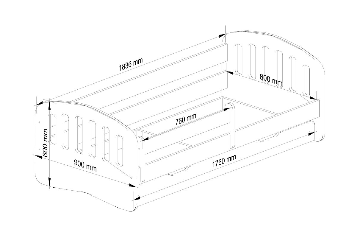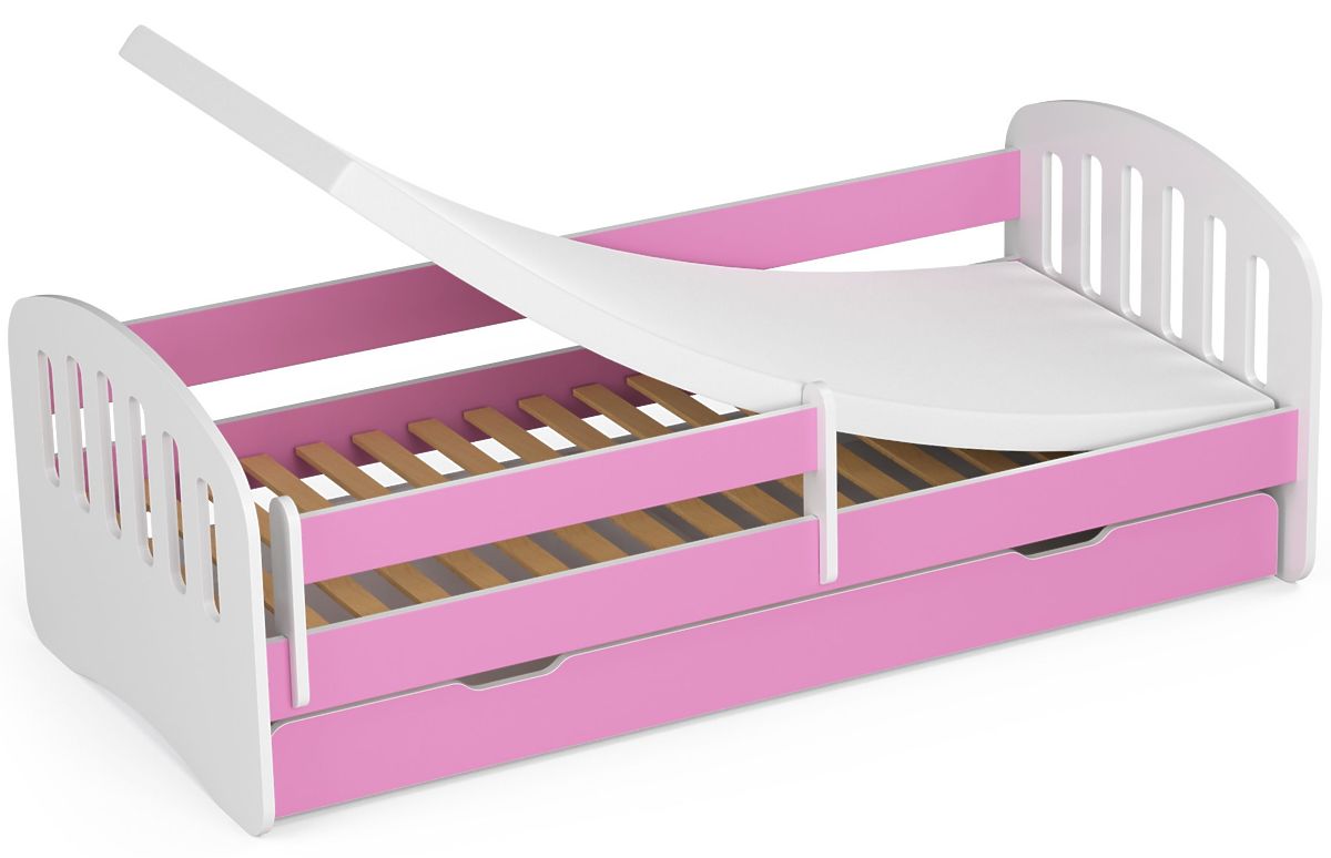 Otroška postelja PLAY z letvenim dnom in vzmetnico. Popolna postelja za fanta ali deklico v otroški sobi. Barva roza.