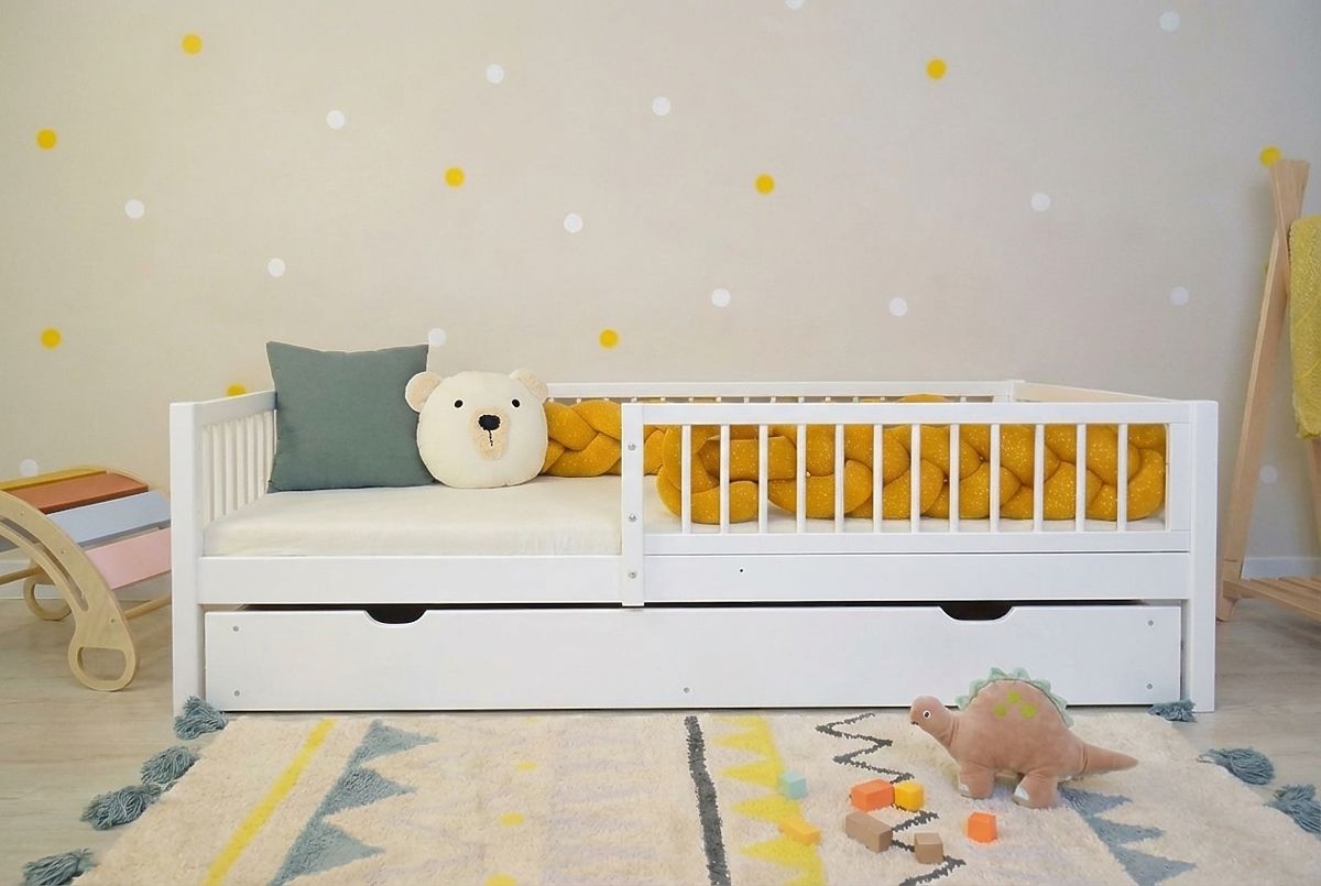 Otroška postelja Teddy v beli barvi za varno in udobno spanje. .. več