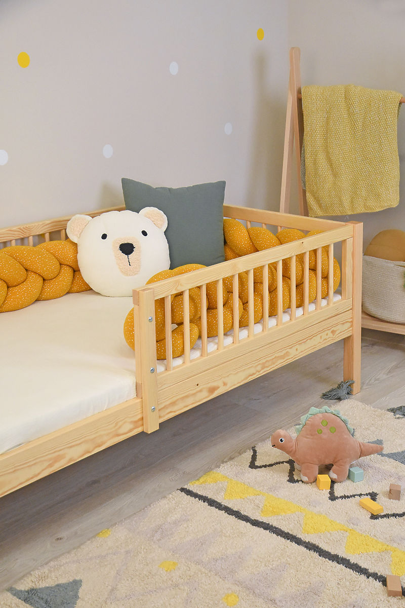 Kakovostna otroška postelja Teddy Plus v naravni barvi je odlična izbira za vsako otroško sobo. Izdelana je iz masivnega borovega lesa, ki zagotavlja trdnost, stabilnost in dolgo življenjsko dobo. Naravna površina brez kemičnega lakiranja je primerna tudi za občutljive otroke. Zaradi premišljenega dizajna postelja nudi ne le udoben spanec, temveč tudi varnost in praktičen shranjevalni prostor pod posteljo.