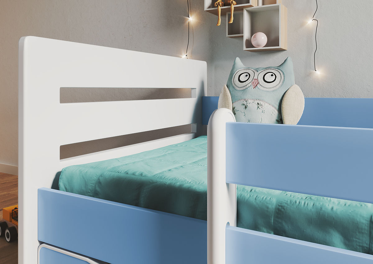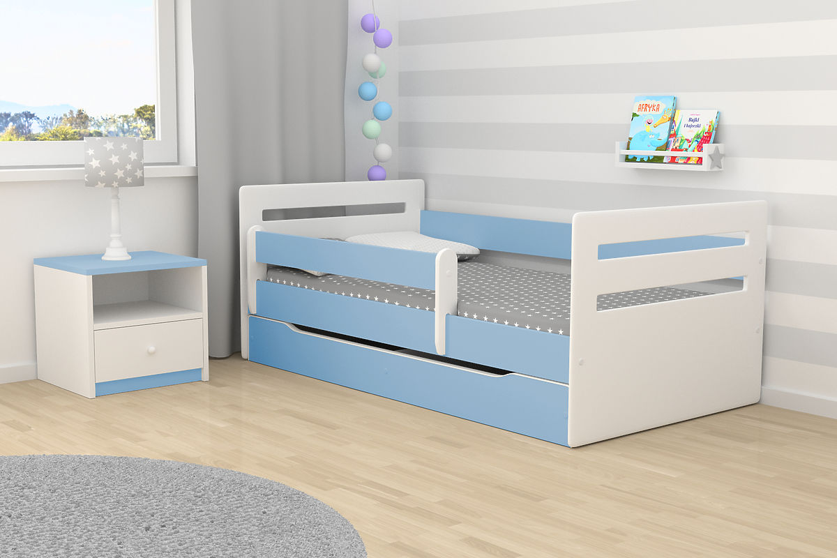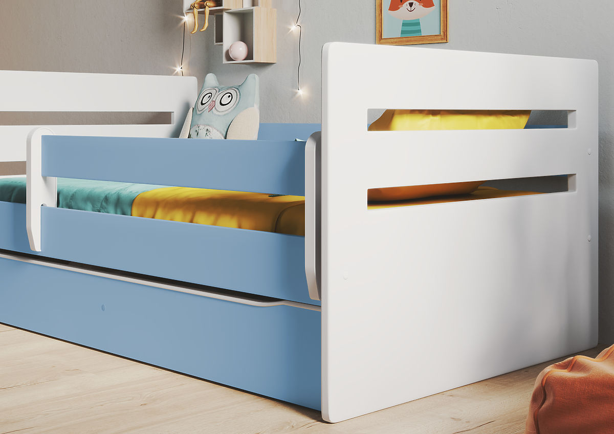 Postelja Tomi je zelo lepo in preprosto oblikovana. Je čudovite nežne modre barve, zato se prilega tako fantovskim kot dekliškim sobam.