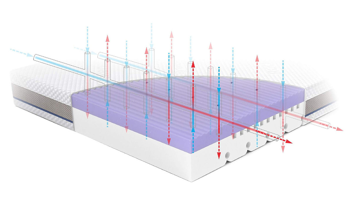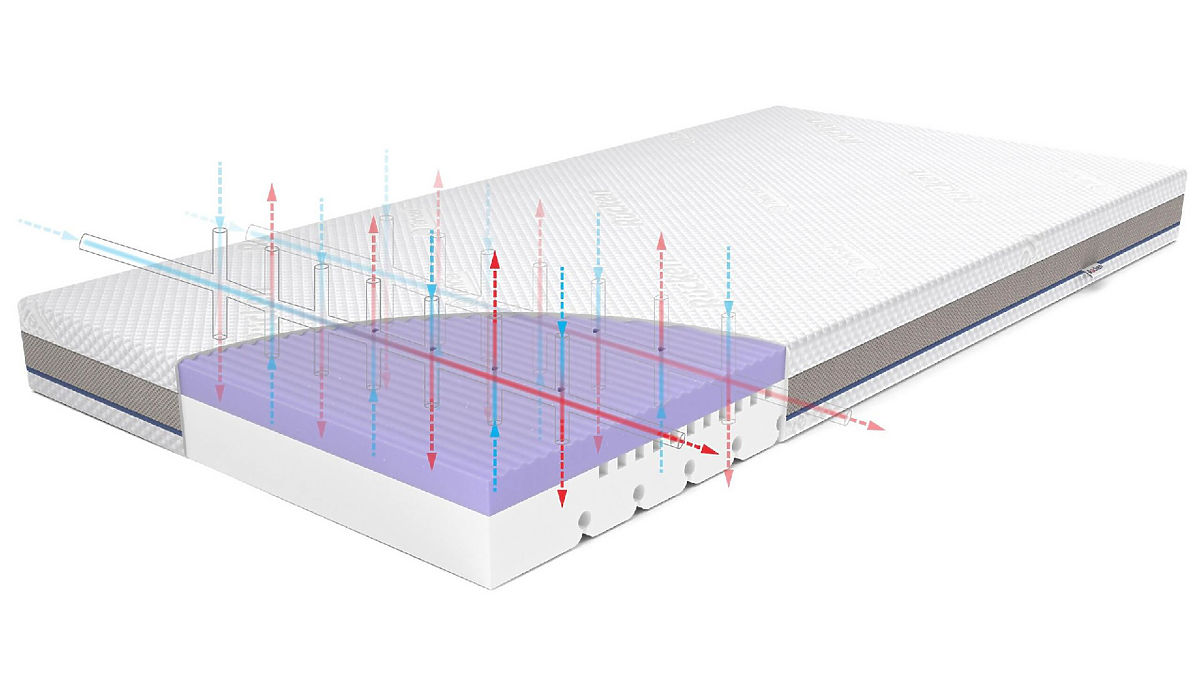 Prevleka mreže in vertikalni ter horizontalni kanali so popolnoma integrirani - zahvaljujoč temu nastane razširjena mreža in vzmetnica diha.