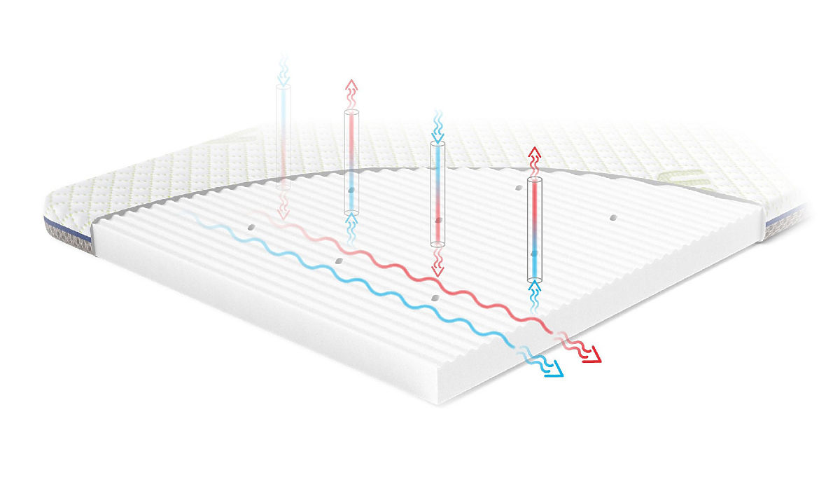 Prevleka mreže in vertikalni ter horizontalni kanali so popolnoma integrirani - zaradi tega nastane razširjena mreža in vzmetnica diha.
