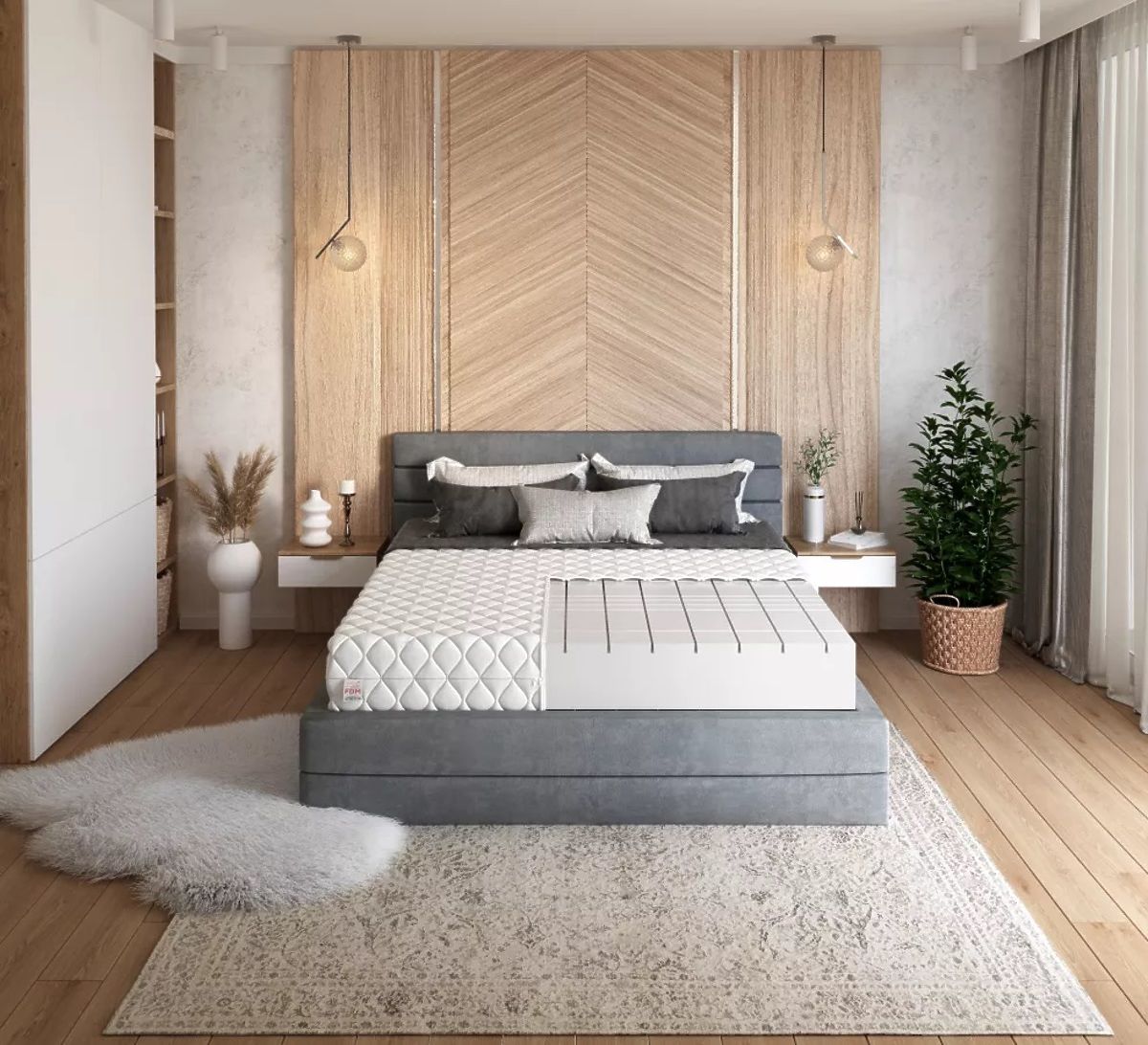Na dvostranski vzmetnici Goya Max, ki je visoka 21 cm, boste spali kot na oblaku. Vzmetnica iz pene je zaradi vrste vzdolžnih in prečnih prerezov razdeljena na 7 con. Tako se znatno poveča plastičnost, ki zagotavlja odlično podporo hrbtenici.