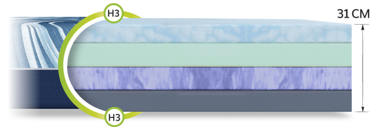 Popoln spanec lahko dosežete z edinstveno vzmetnico DREAMER LUX višine 31 cm . Ta inovativna vzmetnica je sestavljena iz štirih slojev pen z različnimi stopnjami trdote in elastičnosti , ki so bile izbrane tako, da najbolje vplivajo na zdrav in miren spanec.