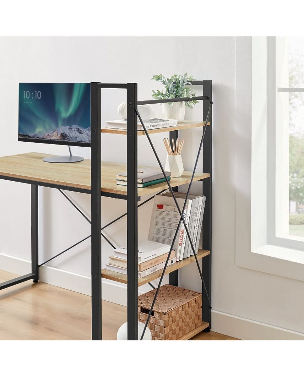 Miza je stabilna, zato lahko nanjo mirno postavimo vse potrebno za delo ali študij - računalnik, monitor, zvočnike ali tudi prenosnik, tiskalnik, namizno svetilko, knjige in zvezke. Na policah je prostor na primer za lončnice, knjige ali druge drobnarije.