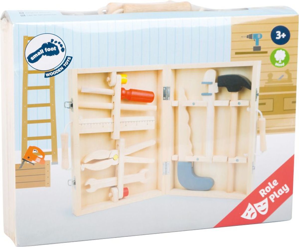 Lesena garnitura z orodji priznanega proizvajalca igrač Small Foot Design je idealna garnitura za najmlajše mojstre. Vzemite svoj kovček in se odpravite na pot. Kakršne koli napake ali manjša popravila ne bodo problem, ko imate takšen izbor pri roki :)