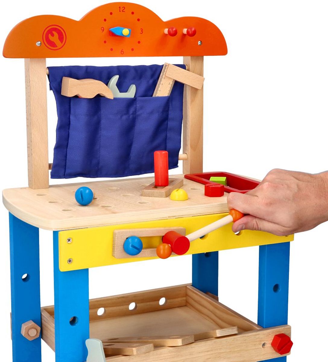 Lesena delavnica z orodjem bo odlično darilo za vsakega malega mojstra. V kompletu boste našli vse, kar potrebujete za vijačenje, rezanje, kladivo in druge DIY dejavnosti.