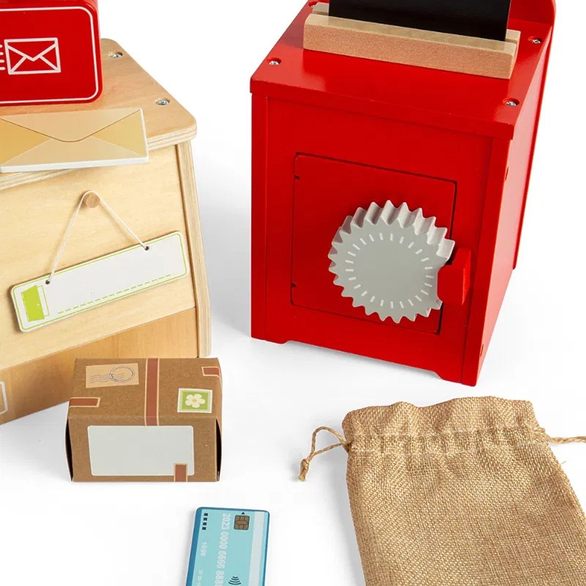 Kaj vse se dogaja na pošti? Mali poštarji lahko doživijo pester dan z razvrščanjem in dostavljanjem pošte s svojim poštnim setom! Set vsebuje vse, kar potrebuje pravi poštar za svoje delo: poštni nabiralnik, blagajno, tehtnico, vrečo za pakete, pakete, pisma, razglednice, žig in še več. Igranje vlog je odlično za otroško domišljijo, ustvarjalnost, socialne veščine in razvoj jezika. Vloge poštnih uslužbencev ali strank bodo izboljšale njihove komunikacijske sposobnosti pri vadbi govorjenja, poslušanja, branja in pisanja. Set je izdelan iz prvovrstnega in trajnostnega lesa s certifikatom FSC® in pobarvan z netoksičnimi barvami in laki. Ustreza trenutnim evropskim varnostnim standardom. Vsebina paketa: poštni nabiralnik s tablo, blagajna, tehtnica, vreča, paketi, pisma in razglednice, kreditna kartica in terminal, žig, računi Glavne značilnosti: 19 delov razvija domišljijo, ustvarjalnost, socialne veščine podpira igranje vlog izdelano iz lesa s certifikatom FSC® primerno za otroke od 3 let dalje Znamka in certifikat FSC® (Forest Stewardship Council) zagotavlja, da les, iz katerega je izdelek izdelan, ni bil nezakonito posekan in prihaja iz gozdov, ki so upravljani na okolju prijazen ali naravi prijazen način, kjer se upoštevajo stroge okoljske in socialne zahteve. Znamka FSC® na izdelku pomeni, da s svojim nakupom pomagate varovati gozdove in podpirate okolju prijazno, odgovorno ali naravi prijazno gospodarjenje, zaradi katerega so naši gozdovi stabilnejši, bolj zdravi, imajo naravno vrstno sestavo in bolje prenašajo negativne posledice podnebnih sprememb.