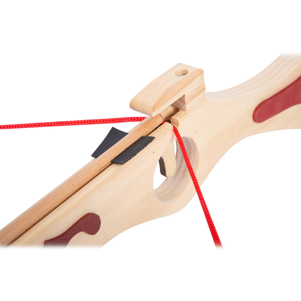 S tem samostrelom lahko otroci dokažejo svojo natančnost. Strelska zabava lahko poteka brez zadržkov, saj lesen športni samostrel strelja le lesene puščice s priseski. Visokokakovostni gumijasti pokrovčki omogočajo, da se puščice oprimejo gladke površine. Glavne značilnosti: Paket vključuje samostrel, tarčo in 2 puščici s priseskom Trojna natančnost