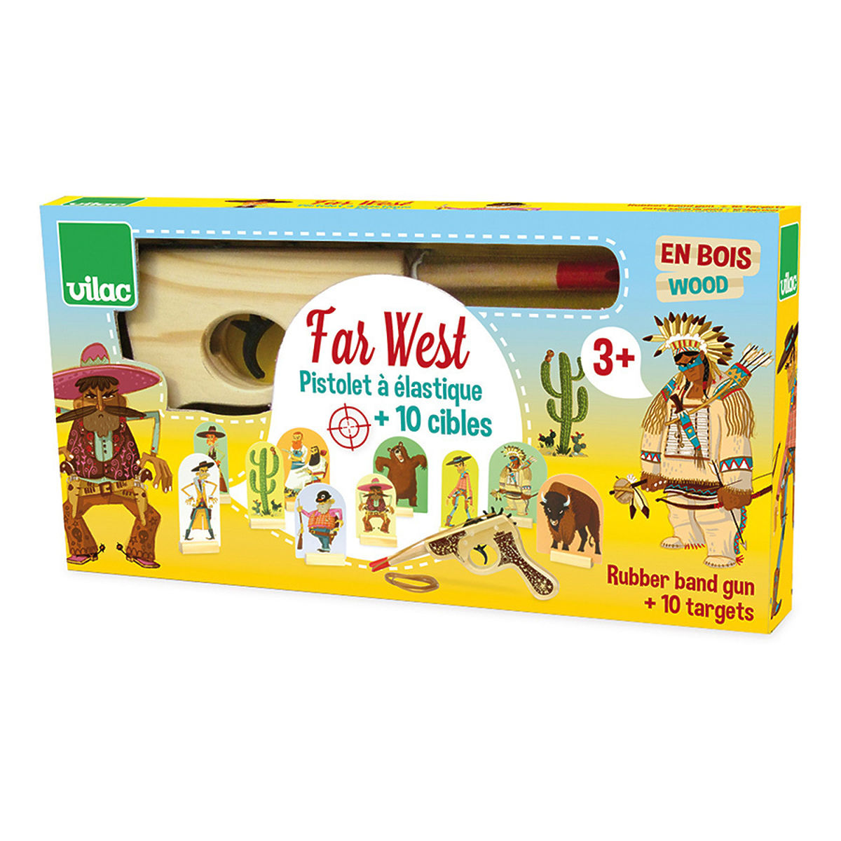 Divji zahod! Vestern igra, kjer zmaga tisti, ki sestreli največ tarč. Preprosto napnite gumico čez leseno puško, nastavite tarče in že lahko začnete streljati. Glavne značilnosti: trenira natančnost