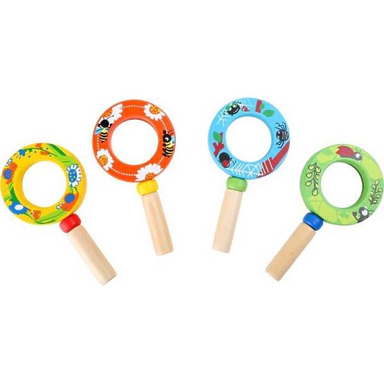 Kdo lahko tukaj vidi najboljše? V vsakem primeru lastnik tega velikega lesenega povečevalnega stekla. Pisani živalski motivi dajejo predstavo o tem, kaj lahko opazujemo in povečamo s povečevalnim steklom. Mravlje, pajki in polži se bodo otrokom predstavili v velikanskih dimenzijah. Ampak naj vas to ne prestraši ...!