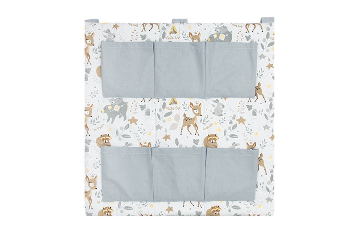 Žepnik je okrašen s čudovitim motivom gozdnih živali, žepki pa so moderno sive barve. Zahvaljujoč univerzalnim barvam se bo odlično prilegal v sobo katere koli vrste.