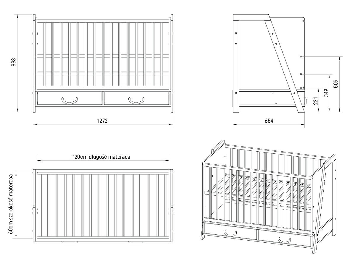 Vzmetnica ni vključena - v kategoriji otroških vzmetnic izberite vzmetnico velikosti 120x60 cm, ki ustreza vašim potrebam.