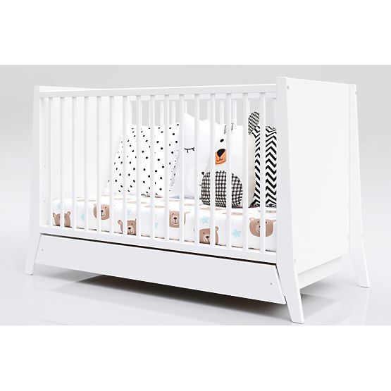Bela otroška posteljica Cosmo z možnostjo preoblikovanja in shranjevalnim prostorom. .. več