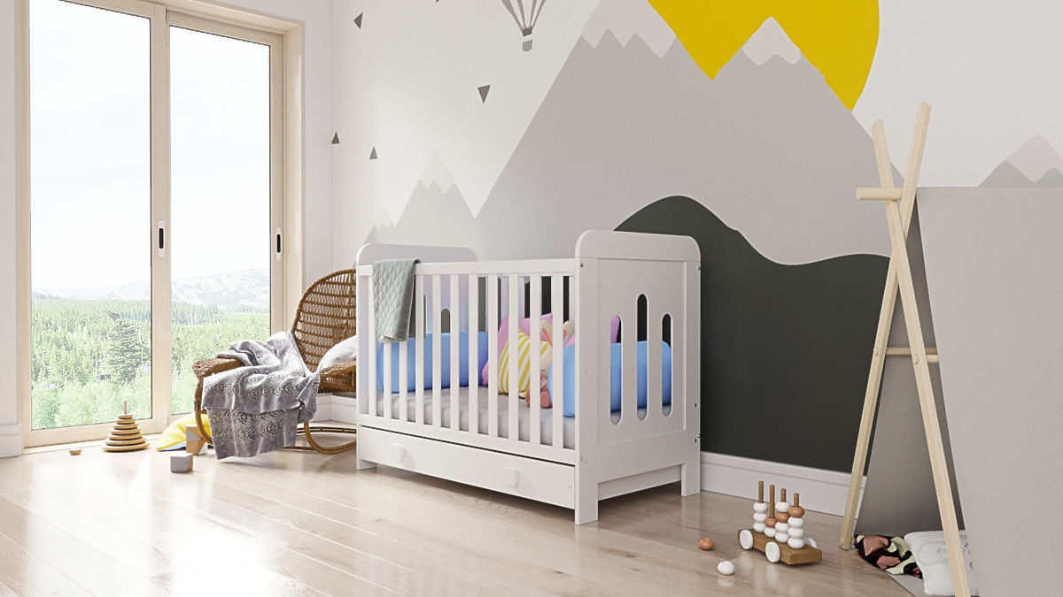 Eleganten model bele posteljice Zuza, dimenzije 140x70 cm. Posteljica je na voljo v različicah z ali brez prostora za shranjevanje. Primerno za otroke od rojstva do višine 120 cm.