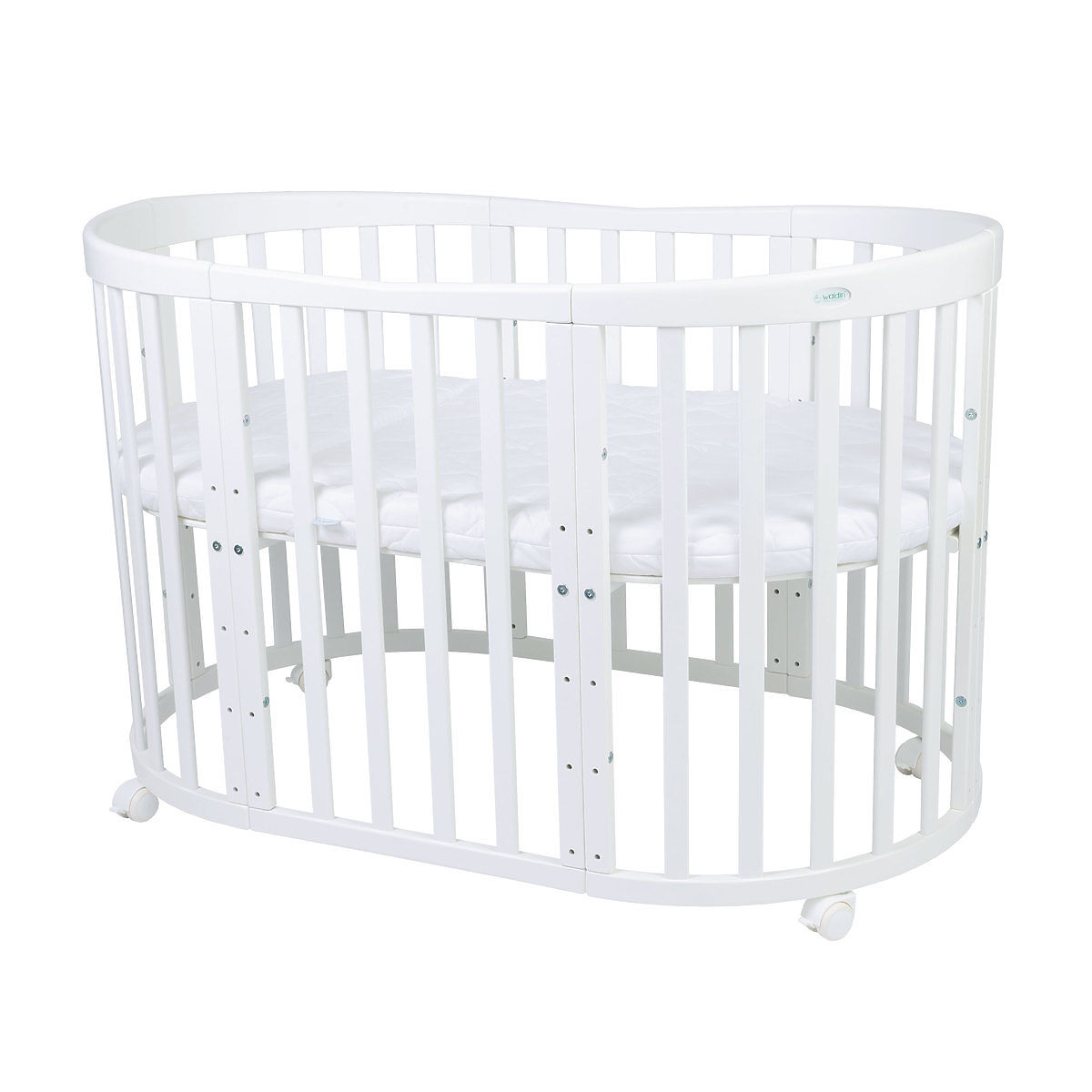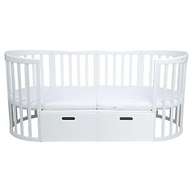 Banaby.si » Otroško pohištvo / Posteljice / Lesene posteljice / Ovalna gredica Ruby 7 v 1 PLUS - bela