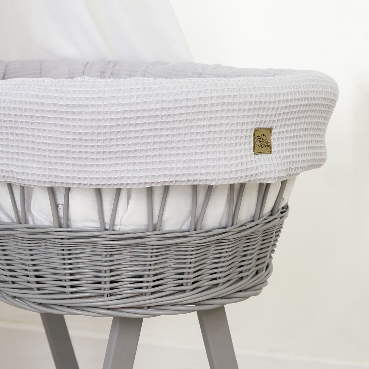 Ta pletena košara ustvari popolno in prijetno mesto za spanje vašega dojenčka kjerkoli v hiši. Siva košara vključuje 5-delni komplet posteljnine z motivom ježka in njegovih prijateljev iz privlačnega vafelj bombaža.