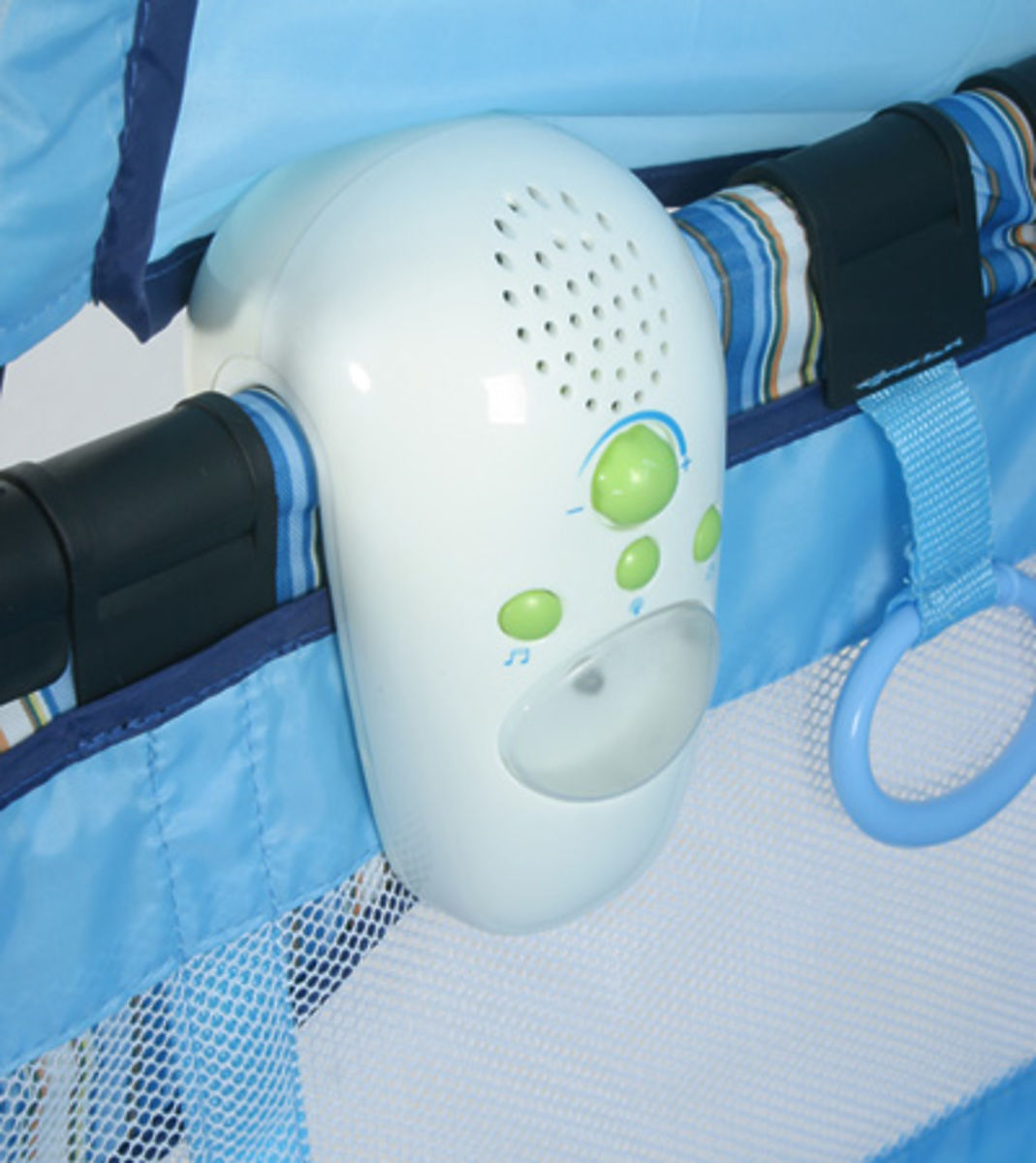 Cestovní postýlka má polohovací dno a můžete jej zvednout do celkem dvou úrovní. Ta první, horní, má nosnost 15 kilogramů a ta druhá, dolní, má nosnost 20 kilogramů. Cestovní postýlka je vybavena lampičkou a hudbou, u které je možno regulovat hlasitost.