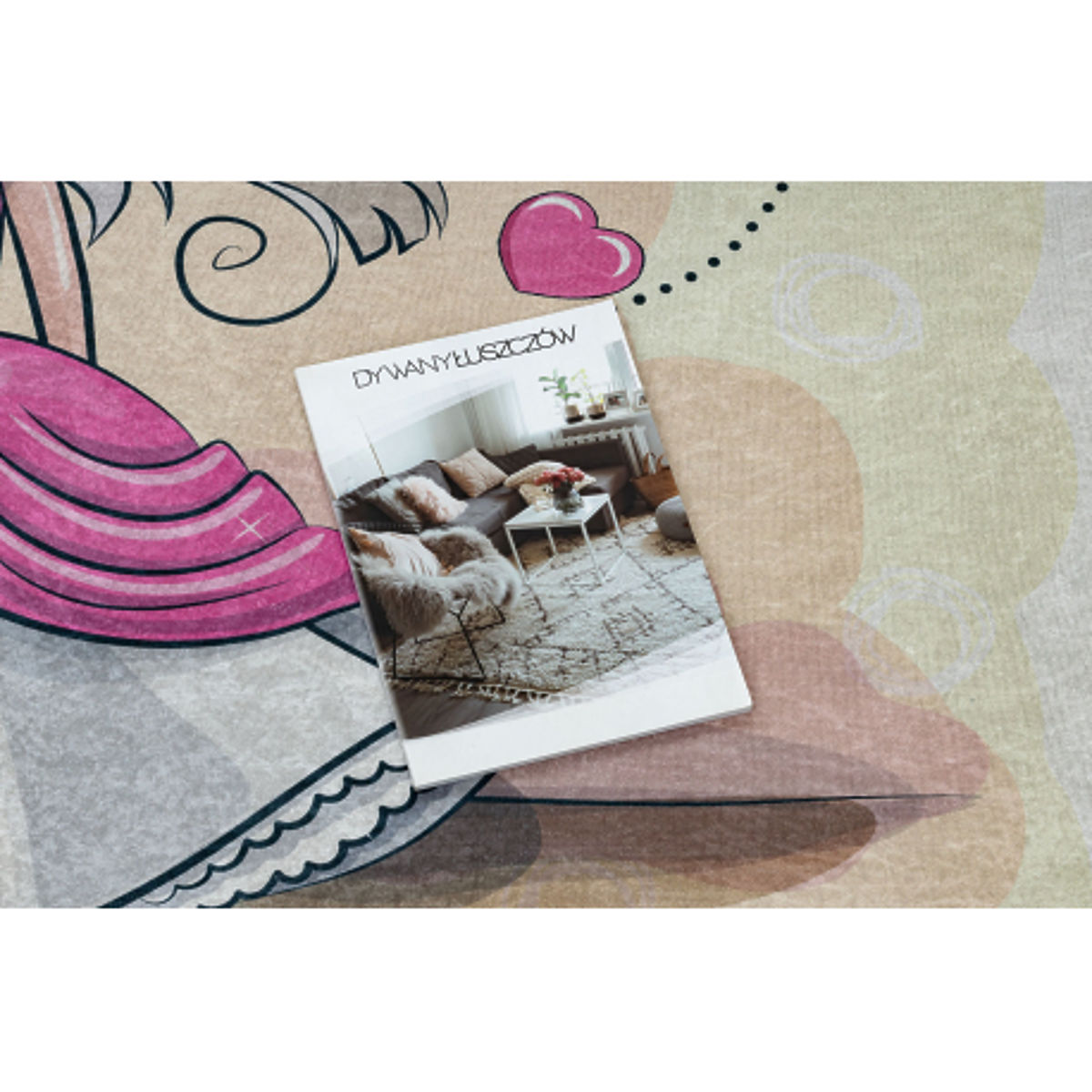 Spremenite otroško sobo v kraljevsko kraljestvo s pralno preprogo BAMBINO 43020, ki očara z motivom princese in nežnih zvezdic. Kombinacija kremne in roza barve deluje nežno, elegantno in lepo dopolnjuje vsako dekliško sobico. Preproga ustvarja pravljično vzdušje, v katerem se bo vaš otrok počutil kot prava princesa – idealna za igro, ustvarjanje in počitek. Preproga je izdelana iz 100% poliestra, kar zagotavlja prijetno mehak površinski občutek, visoko odpornost in enostavno vzdrževanje. Zaradi debeline 5 mm je udobna na dotik in prijetna za sedenje. Nizka teža 0,70 kg/m² omogoča enostavno prenašanje in manipulacijo. Velika prednost je možnost pranja v pralnem stroju, kar olajša vzdrževanje čistoče. Protizdrsna spodnja plast poskrbi za varnost pri hoji in igri na gladkih tleh.