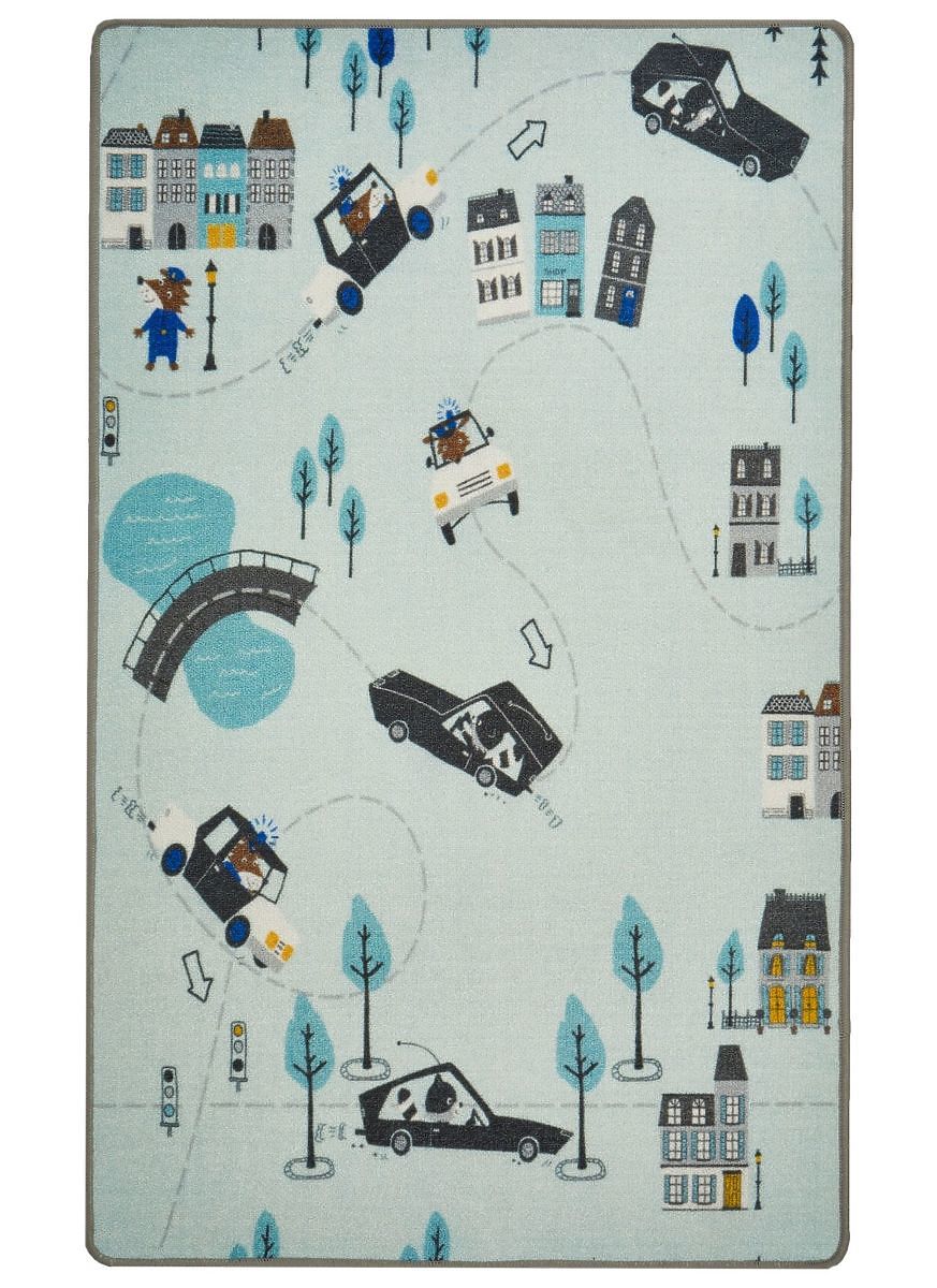 Luxusní mátový koberec se silnicemi, auty a budovami od německé společnosti LIVONE do dětského pokoje pro kluky