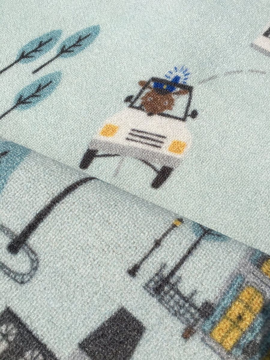 Luxusní mátový koberec se silnicemi, auty a budovami od německé společnosti LIVONE do dětského pokoje pro kluky Vlastnosti:- příjemný na dotek- snadno se .. več