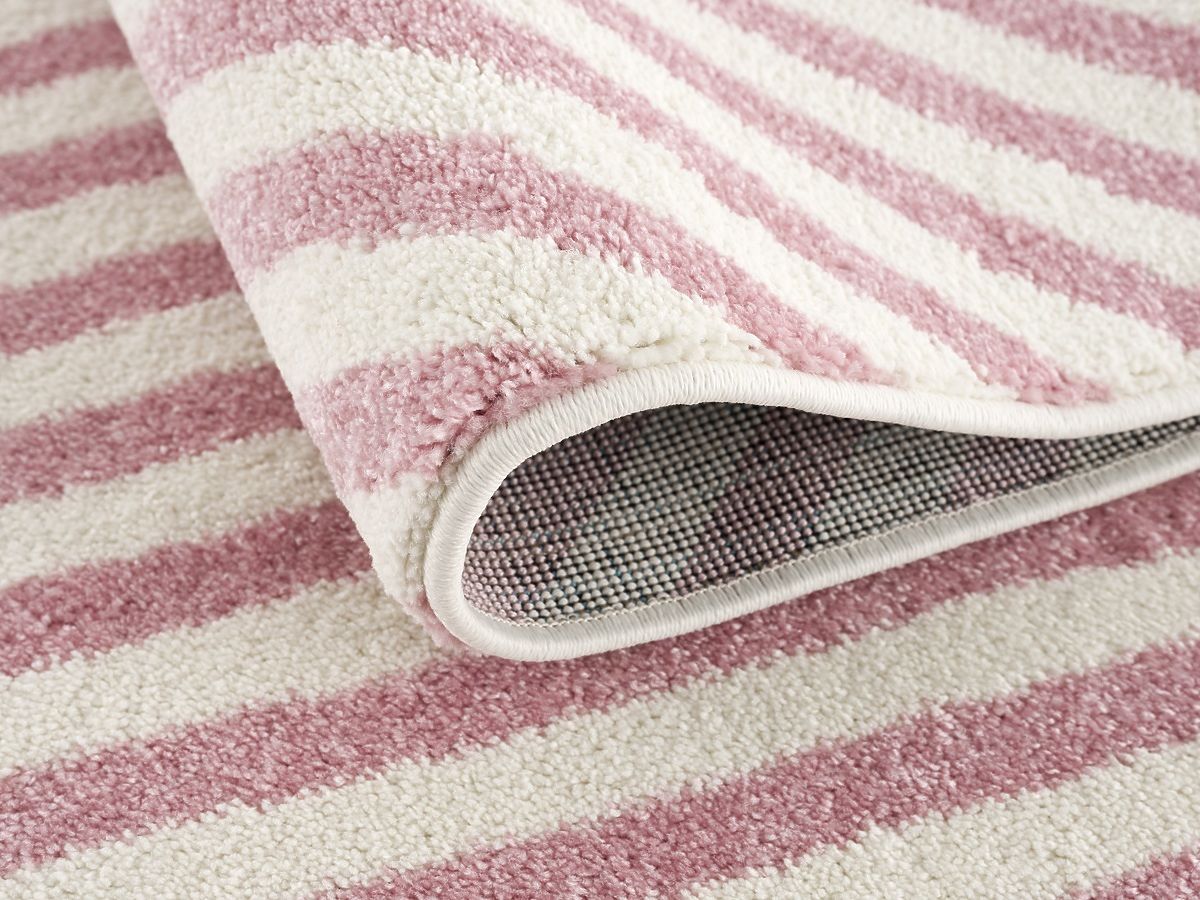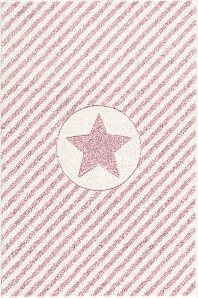 Luxusní růžovo-bílý koberec s hvězdou a pruhy od německé společnosti LIVONE do dětského nebo studentského pokoje. Vlastnosti:- příjemný na dotek- snadno se .. več