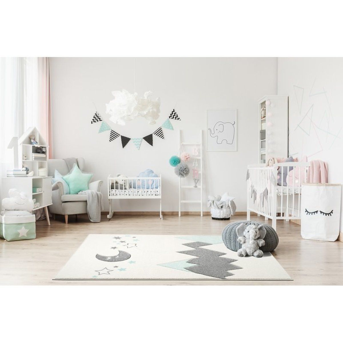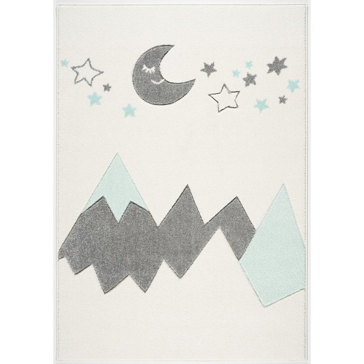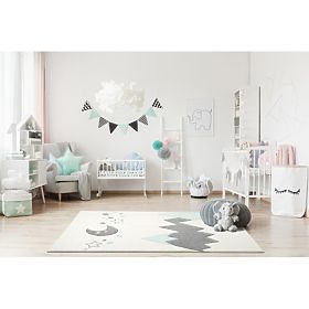Luxusní krémový koberec s motivem hor, měsícem a hvězdičkami v šedo-mátové kombinaci od německé společnosti LIVONE si zamiluje každý člen rodiny.