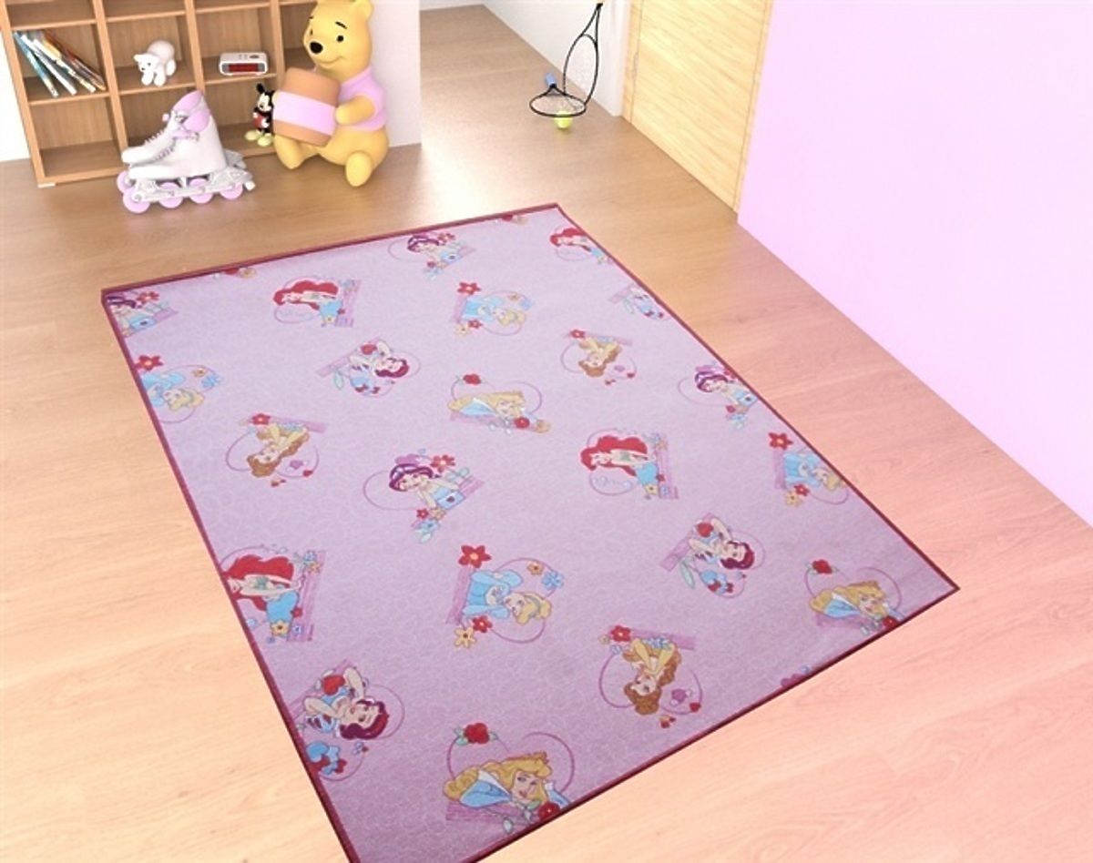 Miluje vaše malá princezna všechny animované princezny? Sněhurka? Malá mořská víla? Jasmína a další princezny? Pak jí jistě do pokojíčku pořiďte tento krásný růžový koberec s motivem princezen. Skvěle doplní a rozzáří každý dívčí pokojíček. Je vyroben z plsti a má tak atest na zdravotní nezávadnost. Dětský koberec je vyroben z kvalitních materiálů. Syté barvy dětského koberce se mohou od skutečnosti malinko lišit a to vlivem osvětlení nebo nastavením monitoru.