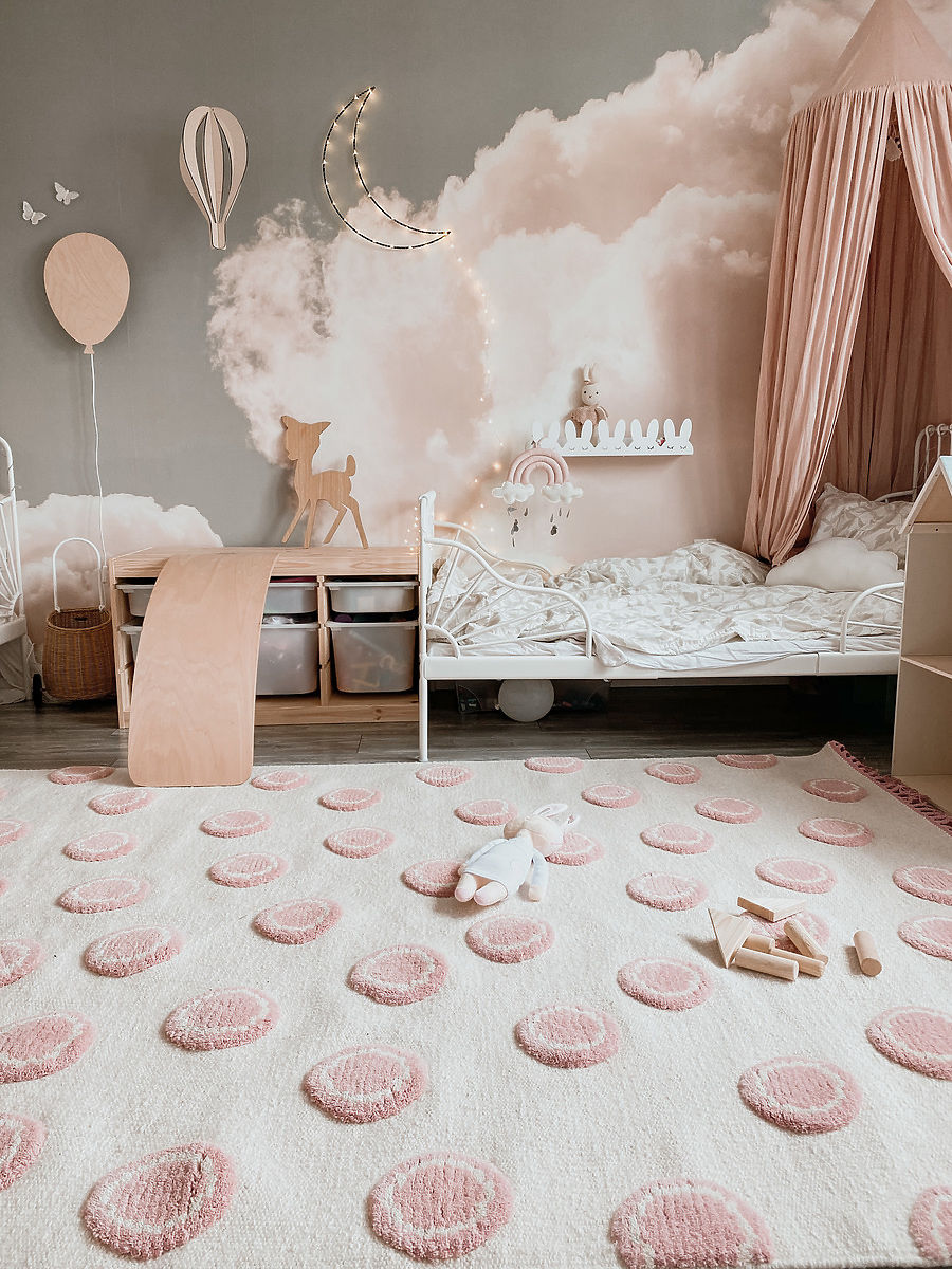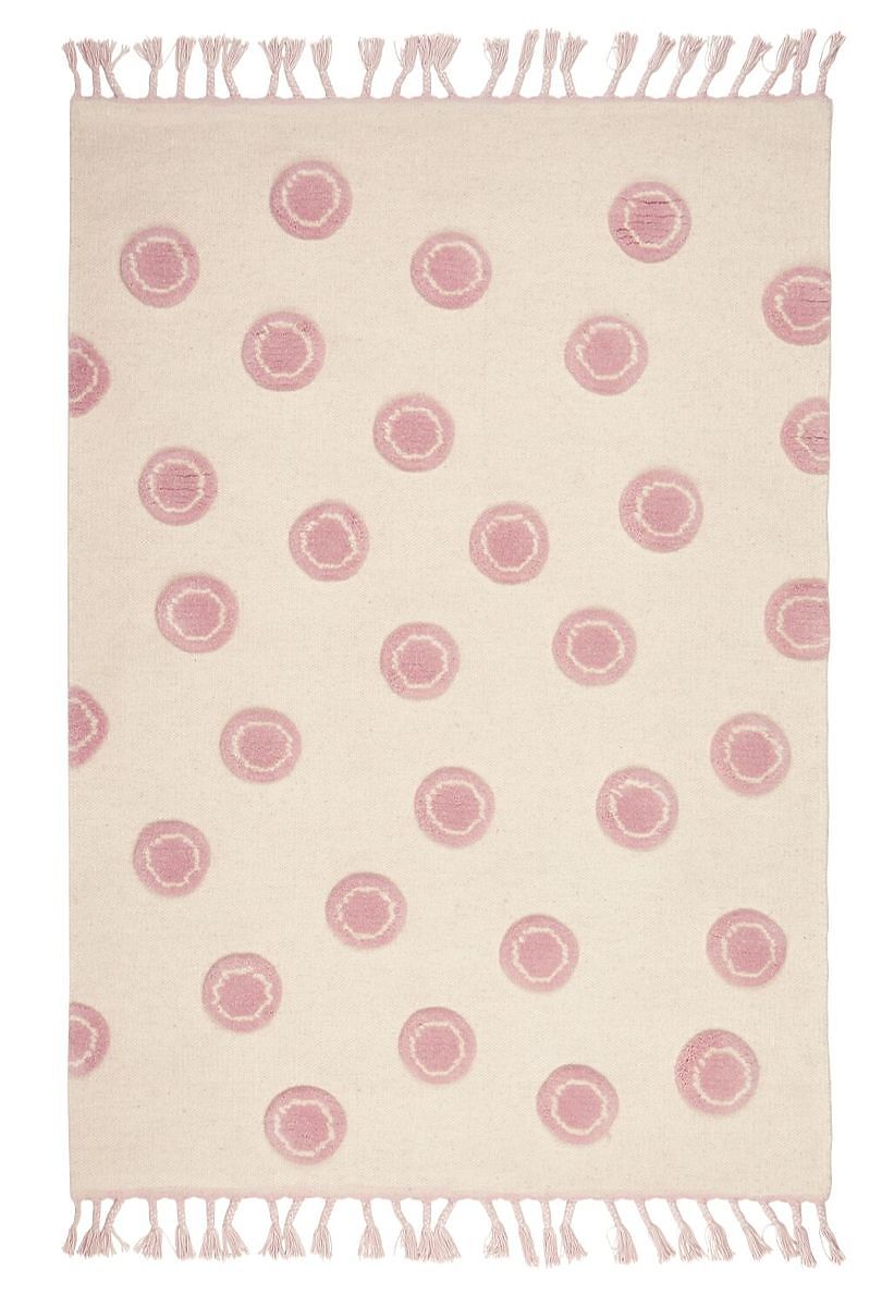 Luxusní krémový vlněný koberec s kruhy v růžové barvě od německé společnosti LIVONE do dětského nebo studentského pokoje pro holky.