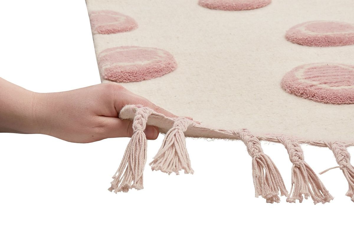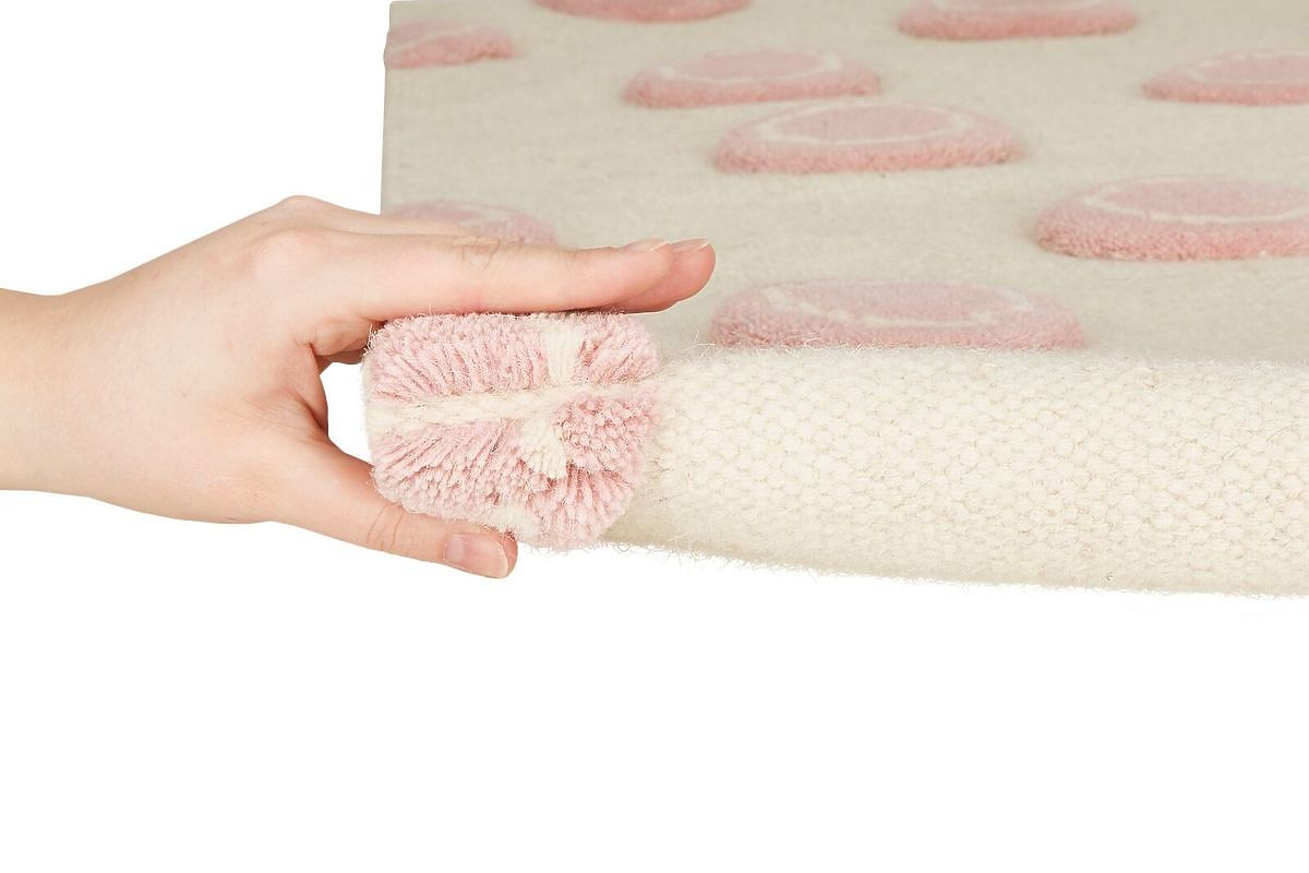 Luxusní krémový vlněný koberec s kruhy v růžové barvě od německé společnosti LIVONE do dětského nebo studentského pokoje pro holky. Vlastnosti:- příjemný na .. več